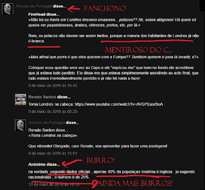 ..invasores, da tua bilha, suponho. Então não é logo isso que os ingleses fazem com os "alógenos"? Estes chegam, arranjam emprego e adquirem capacidade eleitoral, bastando para isso auto intitularem-se "brancos britânicos. Só falta mesmo dizer que o Sadiq Khan não nasceu em Inglaterra e só lá chegou "no ano passado ". Tá bem tá.